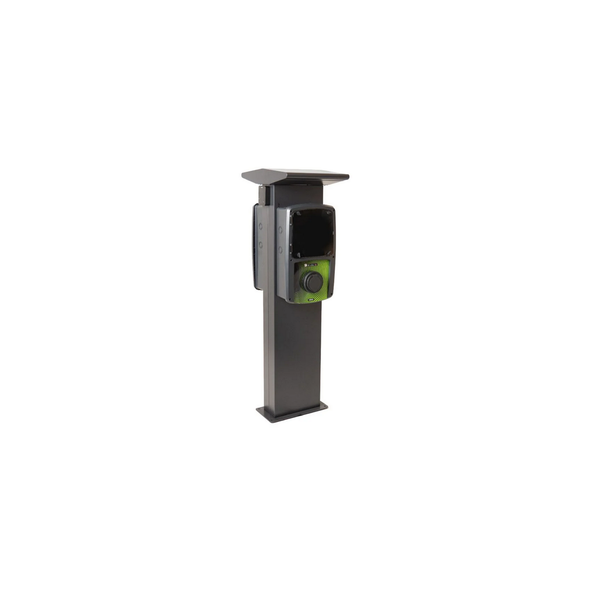 Cette borne de recharge de véhicule électrique comporte 2 coffrets de recharge 7,4kW avec prise T2S-230V.