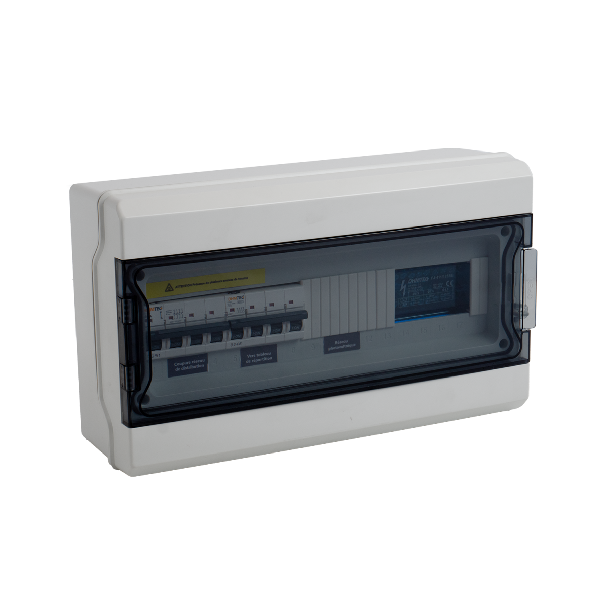 Ce coffret de protection est pré équipé et câblé. Il est obligatoire d'intégrer ce coffret dans toute installation photovoltaïque.