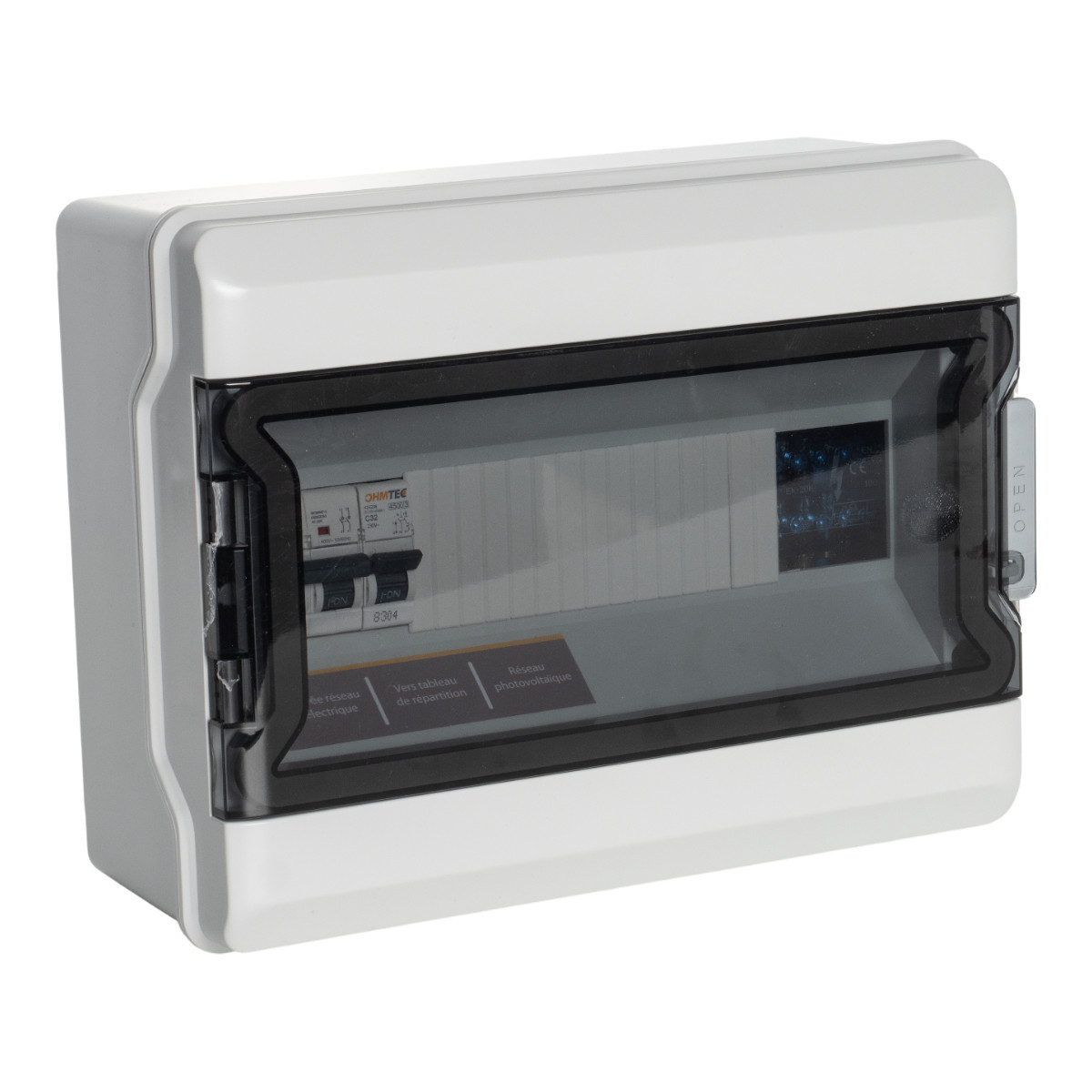Ce coffret électrique additionnel OHMTEC AC est utilisé pour raccorder toutes les sources d'énergies liées à l'habitat, à savoir l'énergie provenant du fournisseur d'électricité mais également l'énergie provenant d'une installation photovoltaïque. Ce coffret est adapté pour un abonnement de 6kW max.