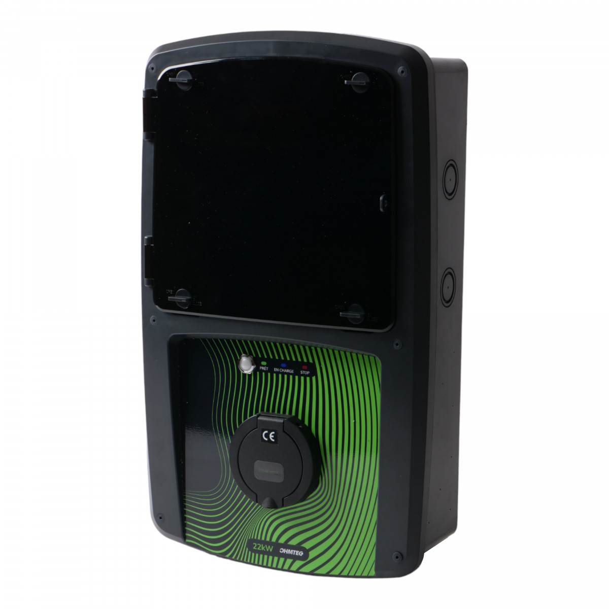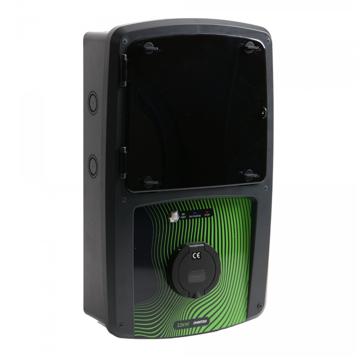 Coffret de recharge résidentiel triphasé pour voiture électrique ou hybride avec 1 prise T2S 22kW.