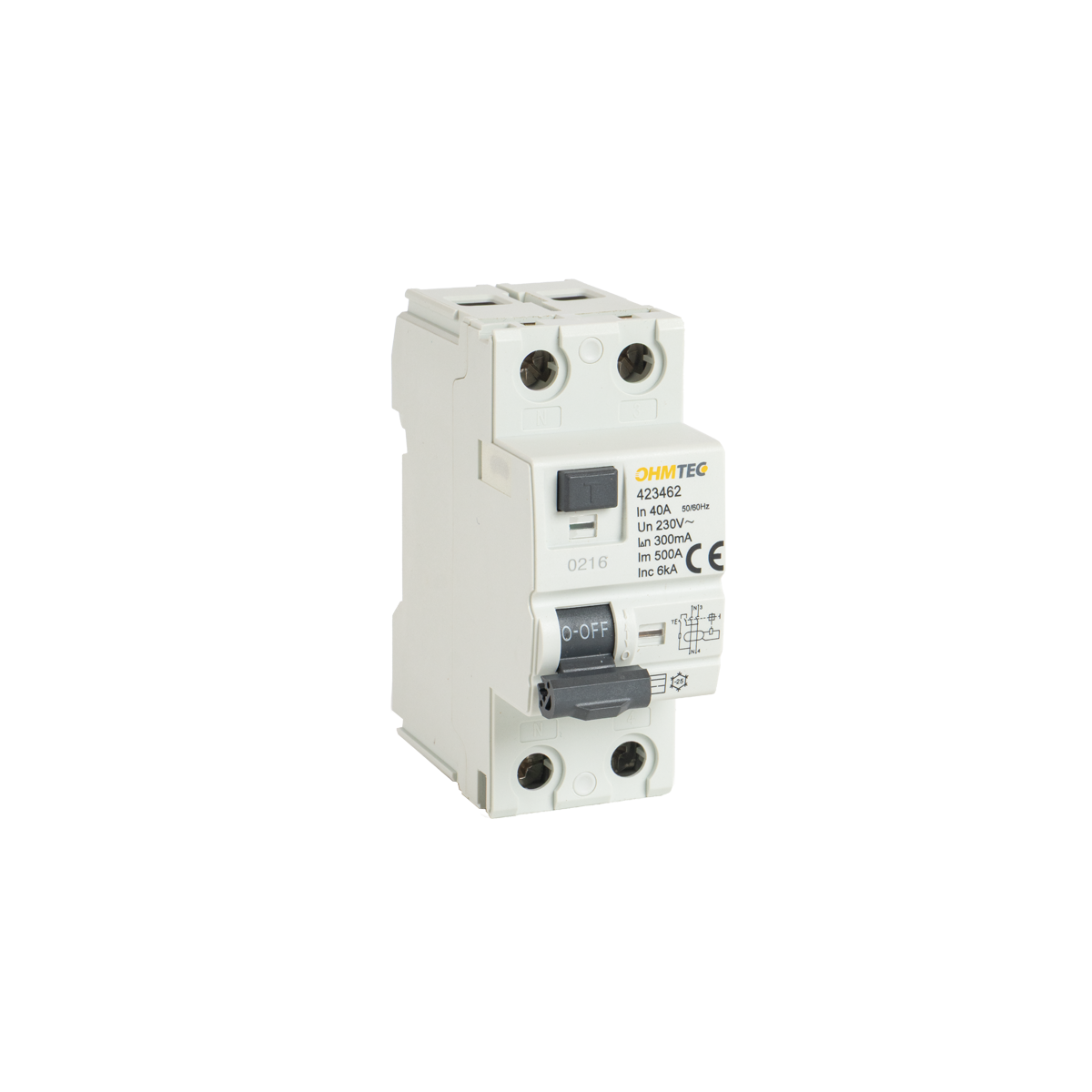 Interrupteur différentiel 25A 300mA 1P+N type B OHMTEC. Conforme à la norme EN 61008-1.