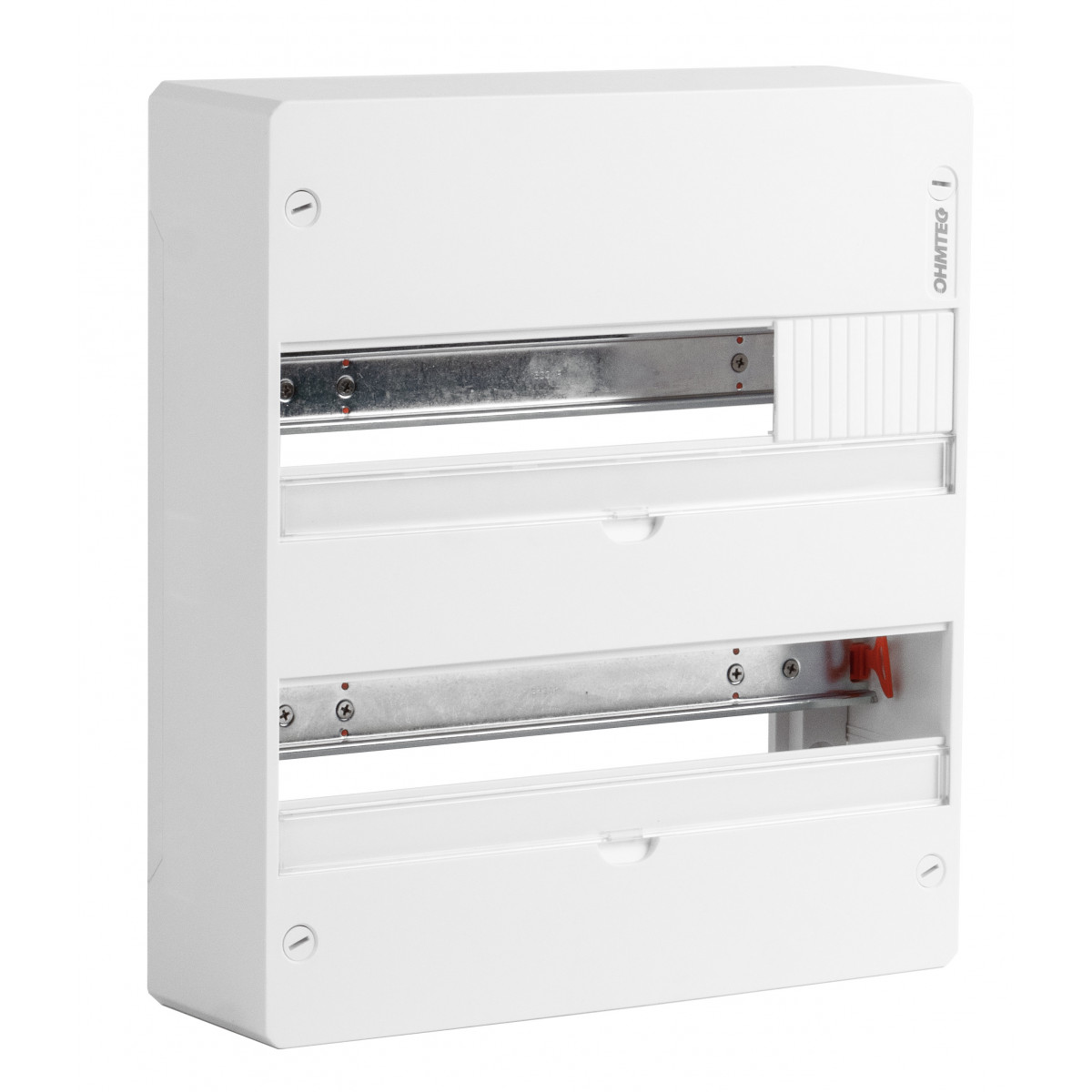 Ce tableau nu 2 rangées OHMTEC peut être équipé de 36 modules. Son montage se fait en saillie. Le tableau nu OHMTEC est livré avec porte étiquettes, étiquettes et bornier.